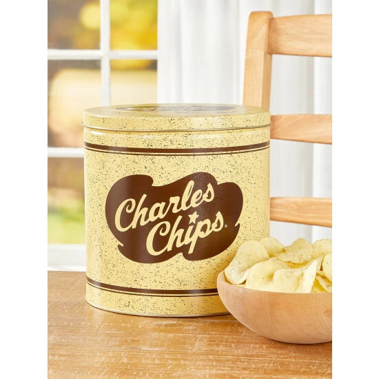 Years ago, when that distinctive gold and brown tin showed up at your door, there was no mistake about it: Charles Chips® had arrived. In honor of that tradition, these classic potato chips are once again available for your snacking satisfaction. Each fresh-tasting chip is light and crispy and perfectly salted—and packed with the same pure potato flavor you remember. And if you haven’t tried Charles Chips yet, you’re in for a real treat!