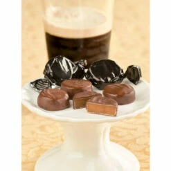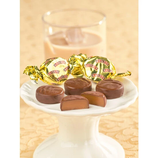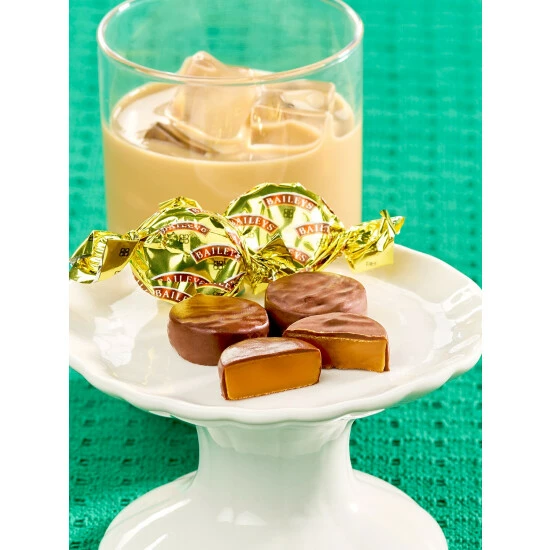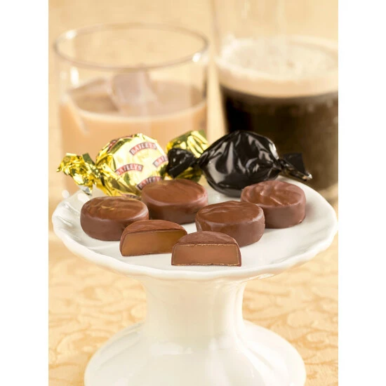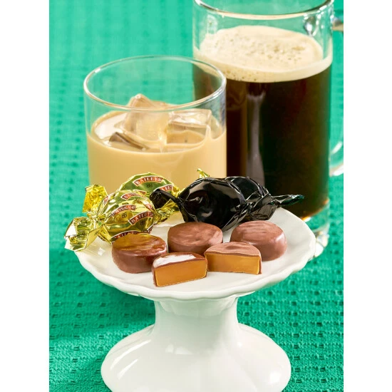 - Creamy caramel center infused with Guinness Stout or Baileys Irish Cream