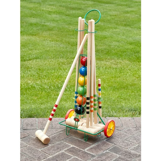 Some people regard croquet as a civilized pastime for a sunny afternoon, best enjoyed with a beverage in hand. Others are ruthless competitors, intent on beating family members and seizing the title of champion. Either way, it’s more fun when you play with a well-made set. This croquet set is made of solid kiln-dried beechwood, and the balls are tough chip-resistant resin. You get six of each, plus two end stakes and 10 metal wickets. All parts store on the colorful trolley, ready to wheel out to the lawn whenever the whim strikes.