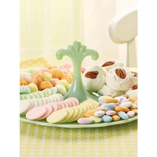 This beautifully made glass tray looks like a treasure found at a flea market or tag sale and is truly an heirloom in the making. The folks at Mosser Glass use heirloom molds and train modern craftspeople in old-school glass-making methods. The result is a keepsake piece like our Tidbit Tray, which is the perfect size to display appetizers, tea sandwiches, cookies, and desserts. It has a pretty fluted center stem that makes it easy to carry, as well as to present sweet and savory tidbits to your guests. Each milky green tray is made by hand, here in the USA.