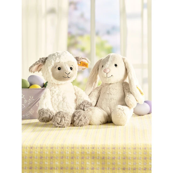 These original Steiff stuffedanimals are incredibly soft and crafted with quality…and plenty of love! Both are handmade by the skilled artisans at Steiff and feature theworld-famous”Button in Ear” trademarkโasymbolof the highestquality. The sweet lamb and cuddly bunny have safety eyes and are machine washable, so you can keep them looking new.