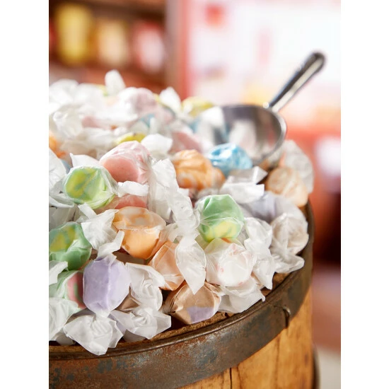 This delightful taffy is made here on the East Coast with a 90-year-old family recipe. Each batch is cooked in a copper kettle until it’s the perfect balance of chewy and soft. Assorted flavors.