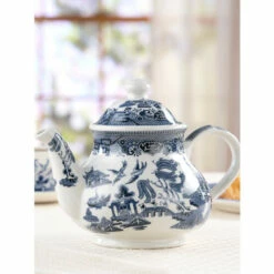 With its classic good looks and iconic Blue Willow pattern that dates back to 1780, this elegant teapot turns everyday tea into a special occasion. But there is more to this pretty piece than meets the eye. It’s crafted from sturdy ironstone so it can withstand the rigors of daily use for years of serving you tea in splendid fashion. Each piece is made using a copper plate, not a decal, which means no 2 pieces are exactly alike. The folks at Blue Willow call this the “Charm of the Ware.”