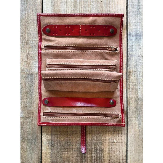 Handmade in Italy from full-grain calfskin leather using centuries old techniques, this jewelry roll keeps your rings, earring, necklaces, and more secure and organized when traveling. It’s fully lined with soft suede and is fitted with six zippered pockets, a ring and hoop strap, an earring strap, and an outer strap with a buckle closure. As a bonus, the hand-stained leather will soften, patina, and develop a silky touch over time.