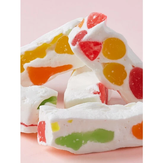 Our confectioners make the softest, fluffiest divinity with whipped egg whites and sugar, and then add a medley of jelly bits in four fruity flavors: orange, lime, cherry, and lemon. One bite and you’ll know why these divinities are one of our most popular candies!