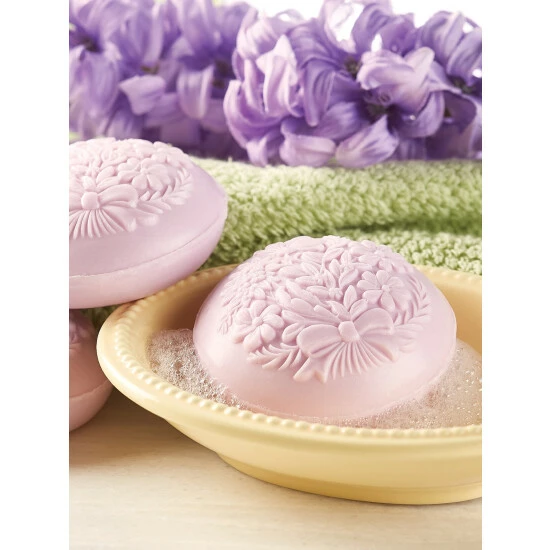 - Each pale violet soap has a beautiful bouquet design