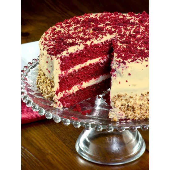 Not long ago, a red velvet layer cake was the centerpiece of a family gathering. Theyโve become rather rare these days because a good one is tricky to make. It has to be light, with just a touch of first-quality cocoa balanced by plenty of pure vanillaโthe vanilla really has to come through. It has to be rich, not just sweet. And the cream cheese frosting is all-important. Weโve found a baker who gets the balance of flavors exactly right, every time, and we are pleased to offer you her best cake.