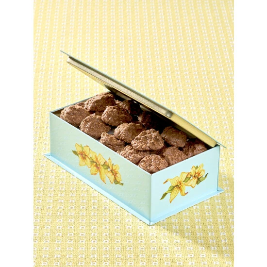 These are, without a doubt, the most delicious chocolate clusters we’ve ever tasted! They’re made with tender shredded coconut blended with creamy milk chocolate for the perfect balance of coconut and chocolate in every bite. We put this chocolate treat in our keepsake goldfinch tin to make the perfect “enjoy now and later” gift. The tin features an exclusive print illustrated by our in-house artist, and when the tin is empty, it’s ideal for storing trinkets and treasures.