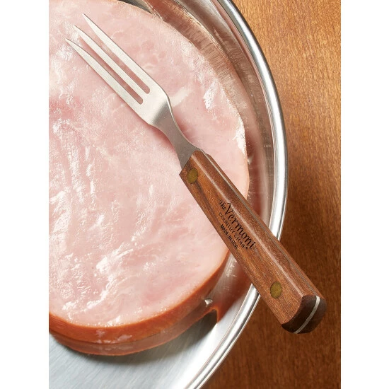 This handy fork features three sharp tines, which makes it perfect for checking for doneness, moving or turning over foods, and for carving smaller cuts of meat. It’s beautifully crafted with stainless steel tines and a rosewood handle with brass rivets.