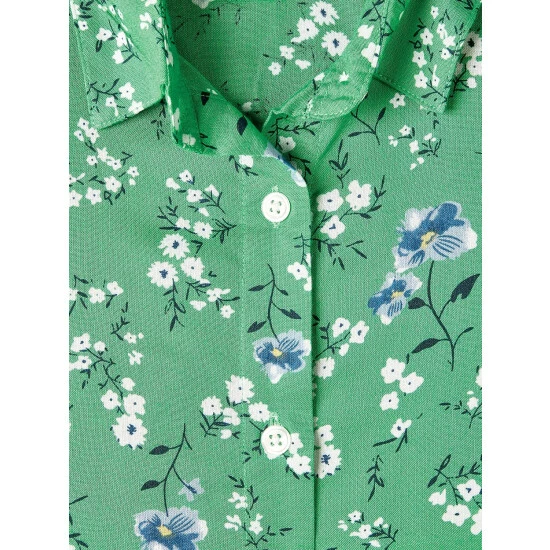 This soft rayon dress, with its budding blue and white blossoms, brings to mind the beauty and serenity of a mountaintop meadow. Equally appealing is how naturally the dress flows over your figure for the ultimate feel-good fit. Finished with a full button front, shirt collar, and an attached self-belt that ties in the back.